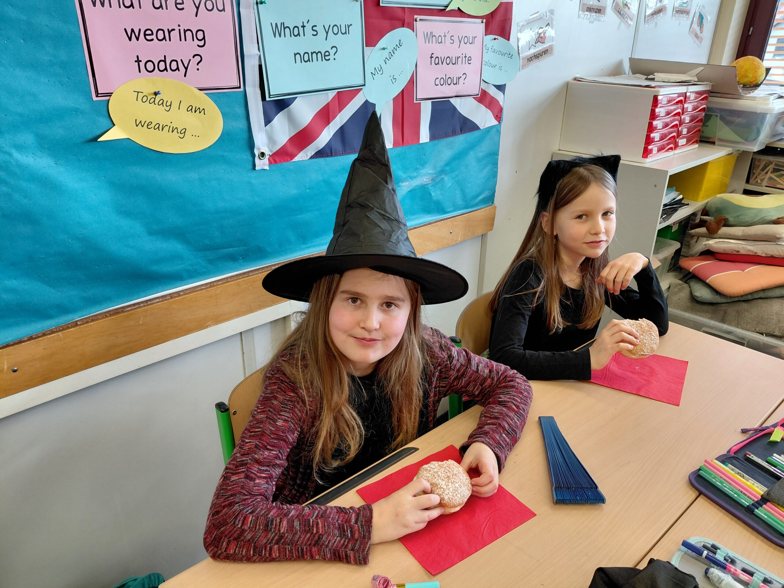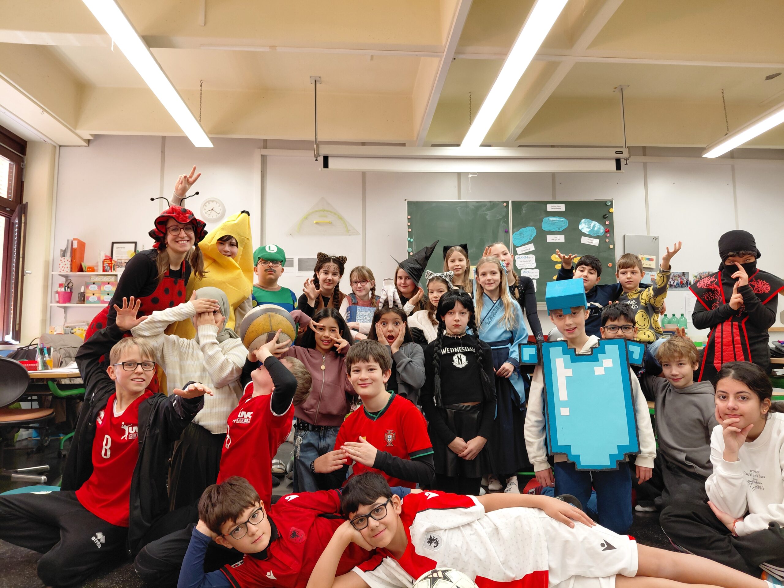 Obwohl der Faschingsdienstag heuer in die Semesterferien gefallen ist, haben wir in der 4b den Fasching trotzdem ein bisschen gefeiert! Wir haben getanzt, gespielt, unsere Kostüme präsentiert und schließlich auch die leckeren Krapfen vom Elternverein verspeist – vielen Dank dafür! Als krönender Abschluss wurde dann noch die Schulnachricht überreicht.