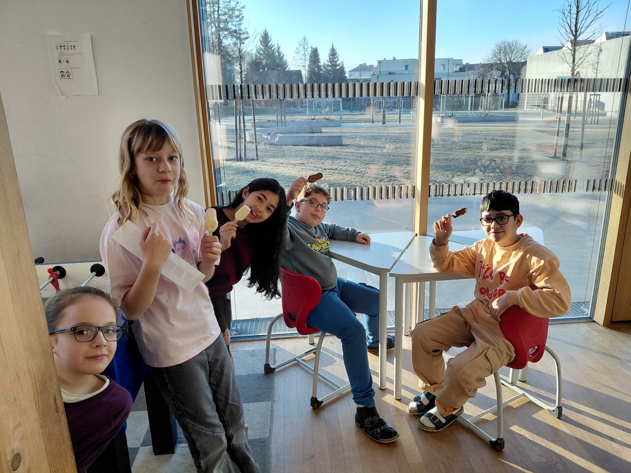 Am Dienstag, 27.01.2026, trafen sich 4a und 4b um den Beginn unserer letzten 100 Tage in der Volksschule Viktor Kaplan zu feiern! Zuerst wurde in Teams ein Rätsel gelöst, dann wurde passend zur Jahreszeit ein Eis genossen 😉 und anschließend durfte gemeinsam gespielt werden! 🙂